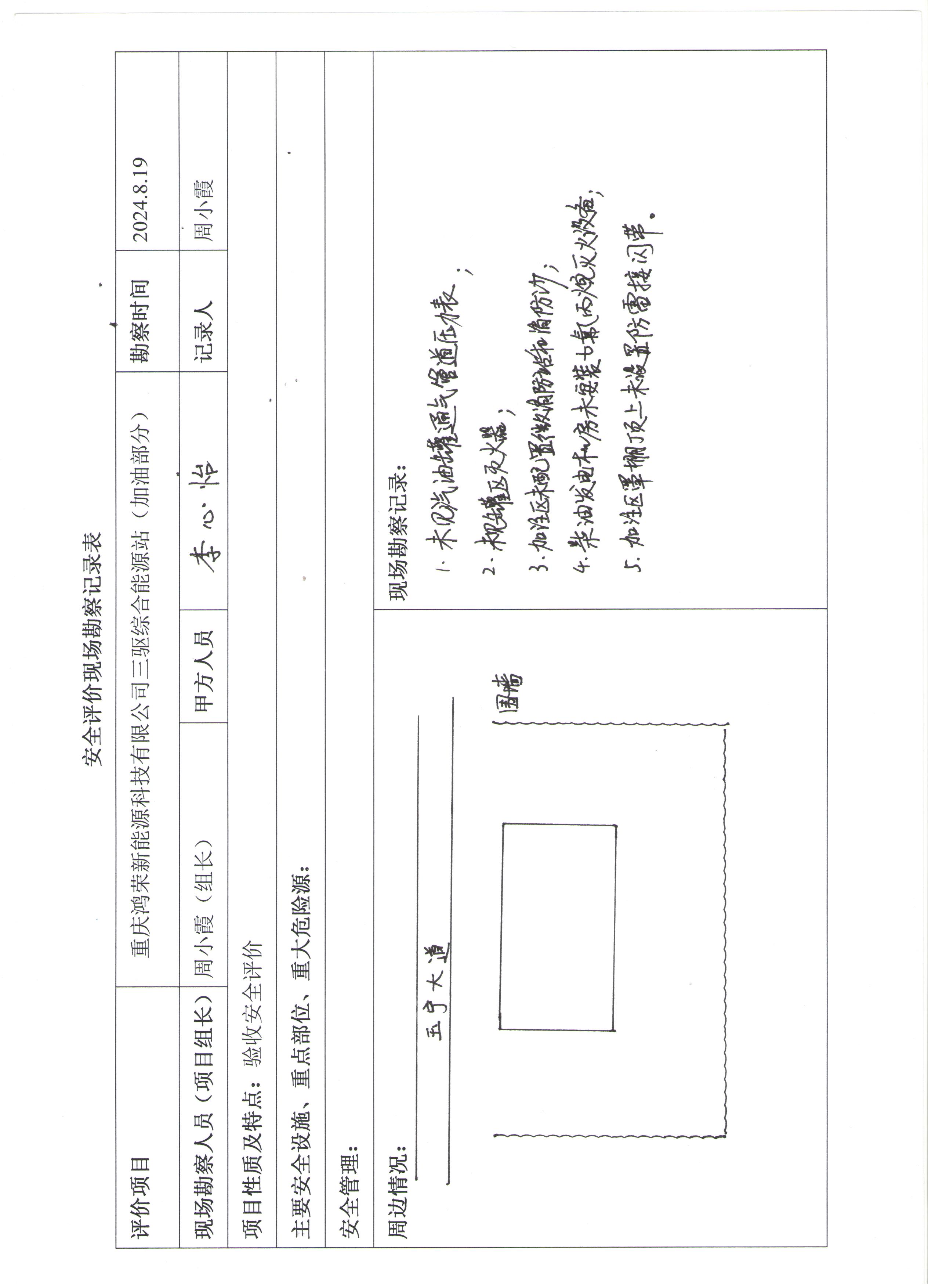 項目名稱 | 重慶鴻榮新能源科技有限公司三驅綜合新能源站(加油部分)安全驗收評價 | 合同編號 | DA(渝)PJ-034 | |||||
