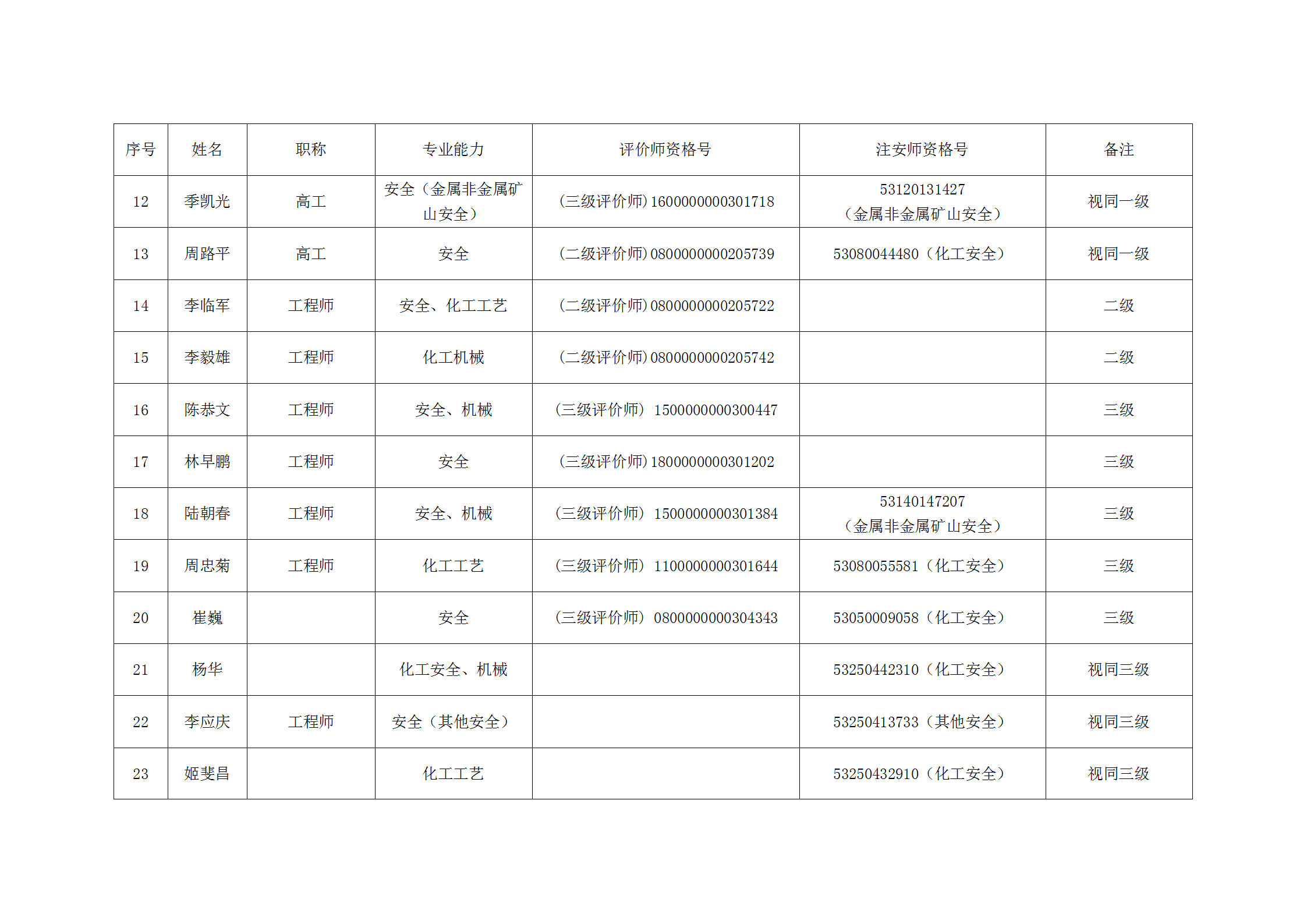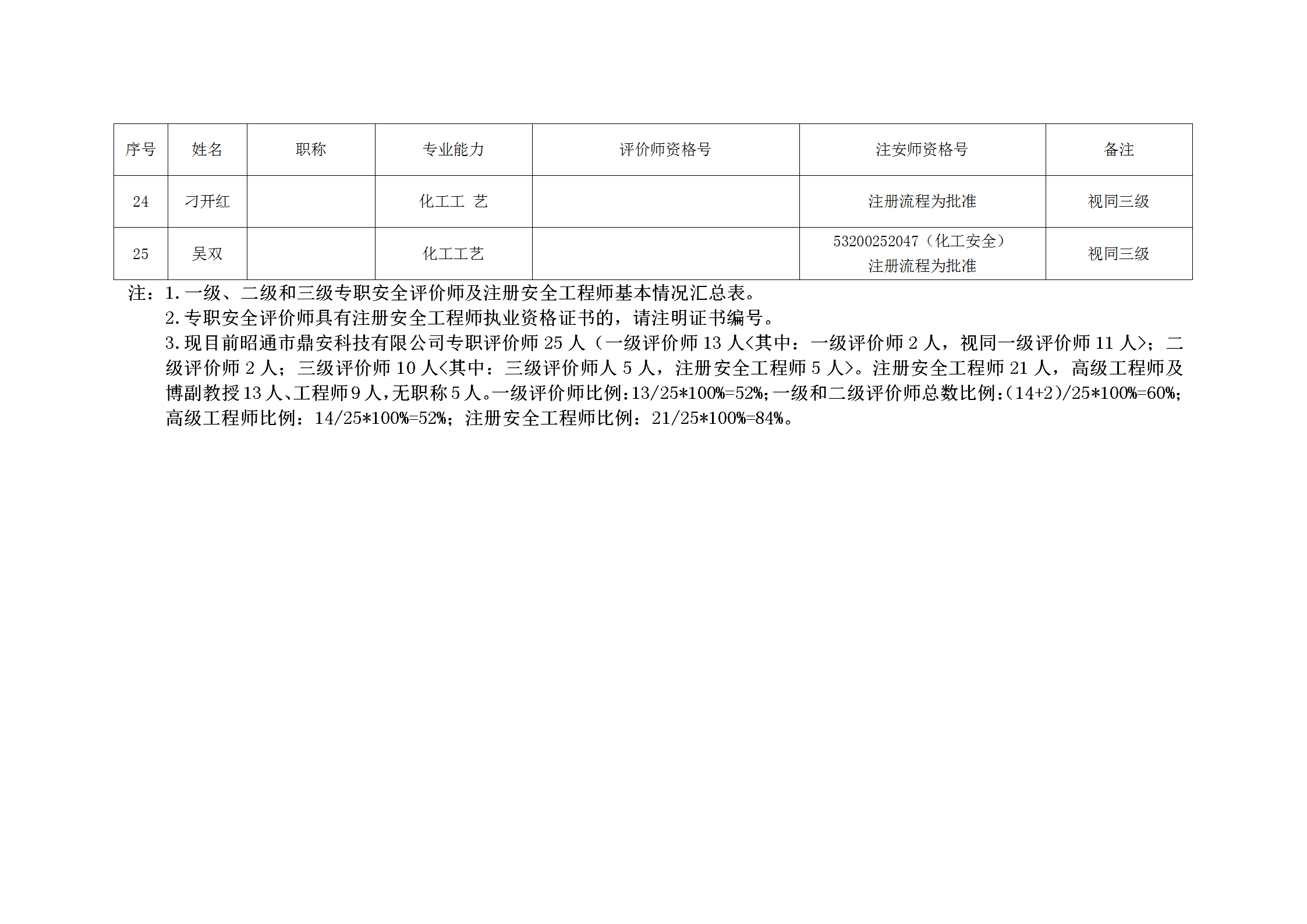 昭通市鼎安科技有限公司安全評價師一覽表